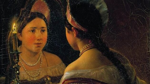 Еще один собиратель русского фольклора позапрошлого столетия Александр Николаевич Афанасьев обнаружил, что поэтическом сознании древних славян зеркало – это объект, из которого за тобой обязательно наблюдают. Об этом говорит и народное название зеркала – «глядельце», «гляделка», да и само название «зеркало» родственно глаголу «созерцать». При этом, как видите, речь идет не о том, что в зеркале видит сам человек, но о том, что из зеркала на него тоже кто-то смотрит. И этот кто-то чаще всего настроен враждебно.