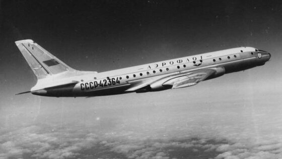Свой первый полёт Ту-104 совершил в 1955 году, а с 1956 года вышел на регулярные авиарейсы. Ту-104 стал гордостью СССР. Его демонстрационные полёты в Лондон и Нью-Йорк производили фурор. На тот момент это был единственный реактивный пассажирский самолёт в мире, так как английские «Де Хевилленд Комета» после череды катастроф были сняты с линий, а американские «Боинги-707» ещё только собирались поступить в эксплуатацию.