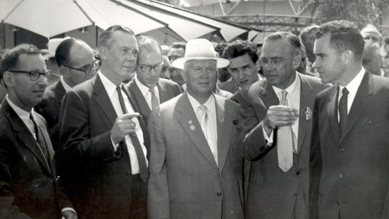 Именно к этому стенду подошел генсек Хрущев вместе с вице-президентом США Ричардом Никсоном.