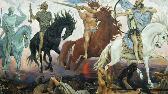 Изначально четыре всадника апокалипсиса впервые упоминаются в шестой глазе Откровений Иоанна Богослова. Но образ этих персонажей стал настолько популярным, что все чаще используется не только в религиозной литературе, но и в современных книгах, а также кино и сериалах.