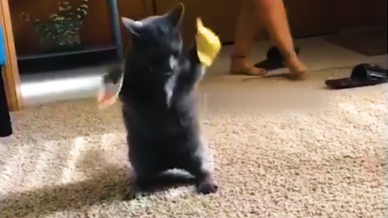 Девушка решила научить кота танцевать, опустив его лапами в клейкую ленту.Ролик от "Бествидео".