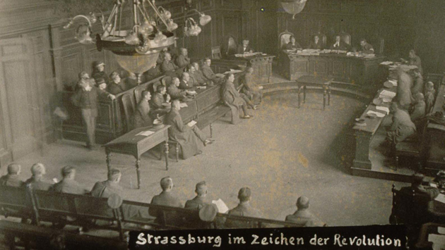 Однако, “разгуляться” новоявленной власти не дали. 21 ноября 1918 года французская армия вступила в Страсбург. Командующий армией генерал Анри Гуро не считает нужным признавать новую власть и отдает приказ окружить Дворец Справедливости.