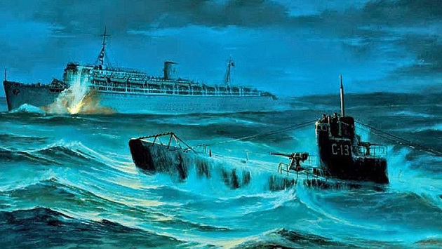 До позднего вечера 30 января лодка Маринеско ничем полезным не отметилась. Всплыв на поверхность в очередной раз, С-13 заряжала батареи. Было темно, ветер нес снег, лодку мотало на волне. И вдруг буквально напротив вспыхнули яркие огни, осветив гигантский корабль, словно новогоднюю дискотеку.