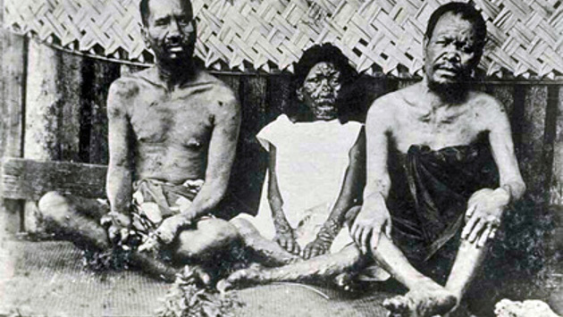 Лепра по сравнению с холерой и чумой — тихая и скрытая болезнь. После заражения может пройти десять или даже двадцать лет, прежде чем возникнут первые симптомы. Сначала на коже появляются нечувствительные к боли пятна, руки и ноги начинают неметь. Очень важно как можно быстрее начать лечение, ведь через несколько месяцев после того, как болезнь проявила себя, возникает необратимое повреждение периферических нервов. Человек теряет контроль над мышцами и оказывается парализованным. Но еще раньше организм атакуют вторичные инфекции, поражающие глаза, кожу, слизистые оболочки и суставные хрящи в кистях и стопах. Пальцы деформируются и укорачиваются из-за отмирания фаланг, черты лица искажаются, образуются трофические язвы.