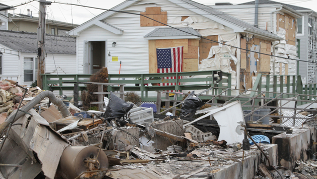 "После долгой из-за затопленных прибрежных шоссе поездки, мы оказались в Фар Рокуэй. Социальное жилье и бедные частные дома. Грязные, заваленные мусором улицы. Часть его явно была там и до урагана".