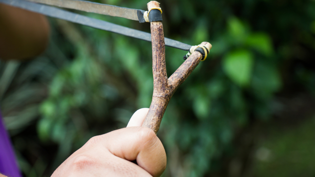 Чтобы сделать шпоночную рогатку, на свалке нужно было отыскать толстый алюминиевый провод в оплетке и найти жгутик. С последним проблем не было — легко добывался из резинки трусов.