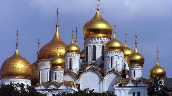 Обычай покрывать купола золотом пришел на Русь из Византии, и конечно, на первых русских христиан производил огромное впечатление самый большой православный храм Константинополя – собор Святой Софии. На устроение Святой Софии ушло три годовых дохода империи, император Юстиниан считал, что этим он превзошел царя Соломона, возведшего Храм в Иерусалиме, и хотел покрыть золотом не только купола Софии, но и стены от купола до фундамента. От этого его предостерегли константинопольские мудрые мужи, предрекшие, что в «конце времен придут в город беднейшие цари и сроют золотую Софию до основания», поэтому делать этого не надо. Посещавший Византию в XIII веке новгородский епископ Антоний описывал внутренности собора с восхищением. Он писал про золотой иконостас, про серебряный амвон и «столпия алтарныя», упоминал огромный золотой крест с жемчугом и драгоценными камнями в два человеческих роста «за святым престолом» и о золотых лампадах, «учиненных» Юстинианом.