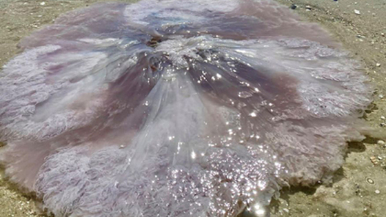 Анатолий Смирнов пошутил, что громадная медуза едва не поглотила его во время пробежки в субботу, 24 октября. По его словам, найденный им экземпляр достигал примерно полутора метров в диаметре. Он запечатлел на камеру необычную особь, выброшенную на берег, и поделился с журналистами.