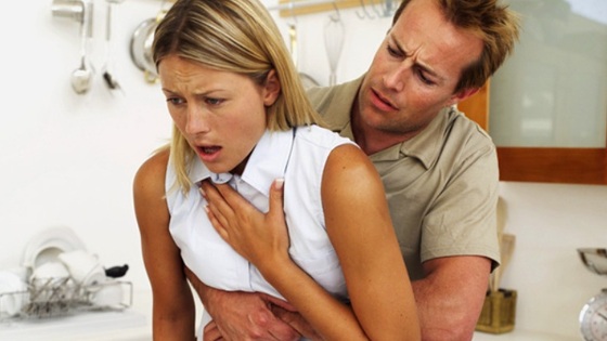 Если человек, которому еда попала «не в то горло», может говорить и активно кашляет, то, вероятнее всего, ничего страшного не произошло и он без посторонней помощи справится с проблемой. А вот если дыхательные пути полностью перекрыты, то человек не может не то что рассказать о проблеме, но даже кашлять и дышать. В таких случаях счет идет на секунды и чем быстрее придет помощь, тем выше шанс на спасение.