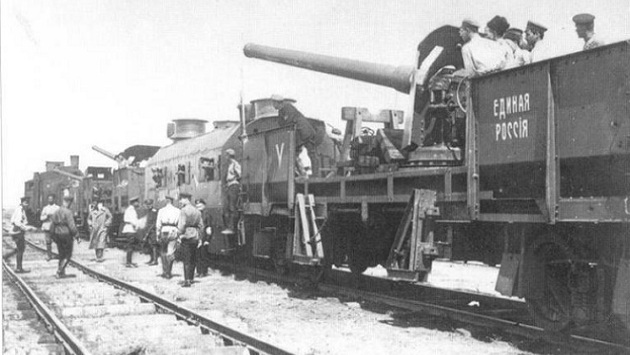 По данным историков, на фронтах Гражданской войны на стороне белогвардейцев действовало свыше 70 бронепоездов, и «Единая Россия» считается первой тяжелой железнодорожной боевой машиной, состоявшей на вооружении Добровольческой армии.