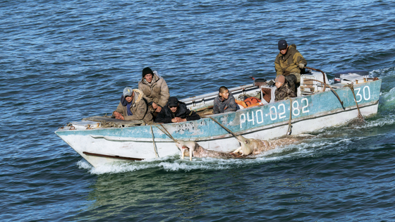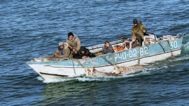 «Опасно. Бывает, что кит лодку переворачивает. При моем муже такое случилось: кит лодку задел, она и перевернулась, два охотника едва не утонули. А у папы моего лет десять назад лодку морж клыком пробил. Так он еле успел до берега добраться. Слава богу, что он человек опытный, его мой дедушка всему научил, который тоже был охотником». «Мой муж еще и частную лицензию охотника получил, — хвастается Татьяна. — По ней он может в год добывать двух моржей. И папа — тоже двух».