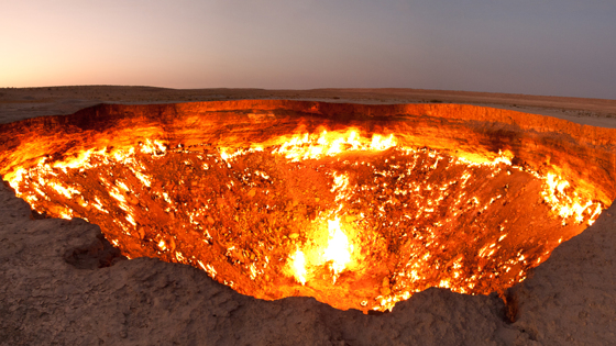 В Туркменистане, в пустыне Каракум, есть уникальный объект, который местные жители давно окрестили “Врата ада”. Это газовый кратер Дарваза, который вот уже полвека беспрерывно горит и днем и ночью. О том, как появилась горящая дыра в земле, читайте в материале “Рамблера”.
