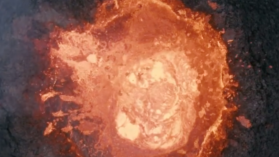 Фотограф запустил дрон прямо над извергающимся жерлом. На кадрах видно, как камера медленно приближается к сердцу вулкана — прямо в бурлящие потоки лавы. «Чувствуете жар? Я сжег свой дрон ради этого кадра», — так подписал свою публикацию Олаф.