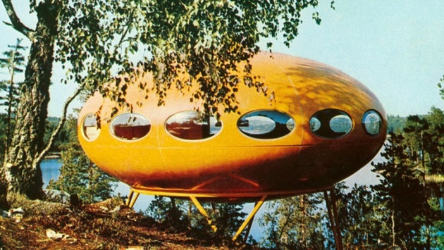 Глядя на эту фотографию, можно подумать, что на ней декорация к фильму про инопланетян. Но это вовсе не муляж, а самые настоящий жилой дом проекта Futuro, популярного в Финляндии в середине 1960‑х. В нем было все, что нужно для комфортной жизни: гостиная, спальня, кухня, санузел и даже самый настоящий камин. Но кому пришло в голову придать дому такую необычную форму?