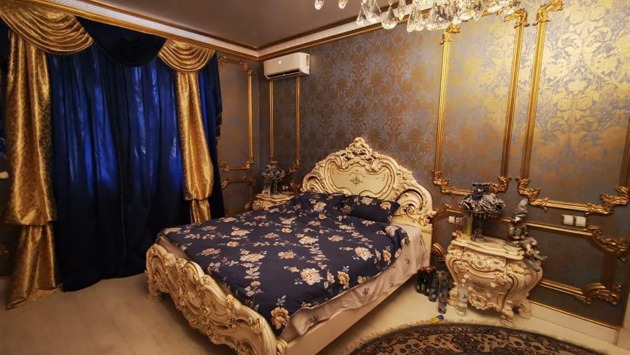 Все дело в том, что особняк этот больше похож на царские хоромы — бронзовые канделябры, потолочная роспись, килограммы хрусталя, фрески и золотые унитазы. Интерьер, скорее всего, задуман был как дворцовый шик, однако в Сети уверены, что дом главы ГИБДД больше похож на хоромы цыганского барона.