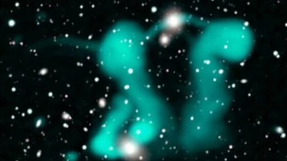 Структуры вращались вокруг двух далеких галактик. Исследование показало, что на самом деле они являются облаками электронов, извергающихся из двух сверхмассивных черных дыр.