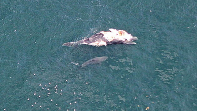 Акулье пиршество удалось сфотографировать биологу Джону Чизхолму. По его словам, одна из акул-людоедов была очень крупной — более пяти метров в длину. «Две другие по сравнению с ней казались крохотными», — написал он в Facebook. Также мертвый кит привлек несколько синих акул.