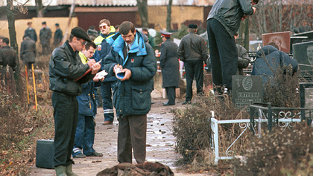 Мощный взрыв на Котляковском кладбище, расположенном в тихом столичном районе Царицыно, прогремел в 11:30. Бомба была заложена у могильной плиты Михаила Лиходея — бывшего председателя Фонда инвалидов войны в Афганистане, погибшего двумя годами ранее.