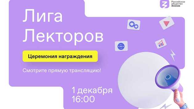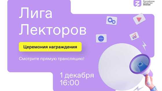 1 декабря в 16:00 смотрите прямую трансляцию торжественной Церемонии награждения победителей конкурса «Лига лекторов», организованного Российским обществом «Знание».