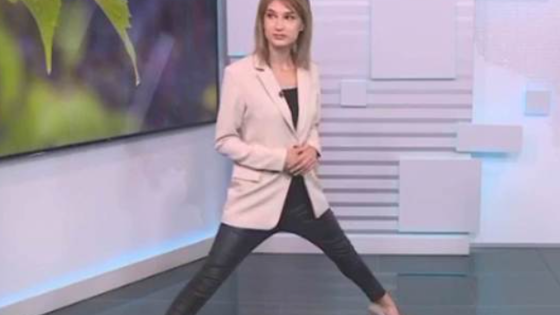 В такой растяжке девушка легко и непринужденно рассказывала о погоде. Зрителей такой прогноз сильно удивил, но позже Андреева объяснила, в чем было дело.