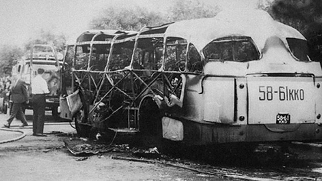 Ударной волной ЛАЗ-695 подбросило вверх, деревья на обочине вырвало с корнем, а у ближайших домов выбило стекла. За мгновение автобус, который заправили под завязку всего за полчаса до взрыва, охватил огонь.