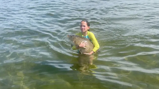 Одиннадцатилетняя девочка смогла голыми руками поймать огромного карпа. Его вес всего вдвое меньше, чем ее собственный. Об удивительной рыбалке написали в издании Newsweek.