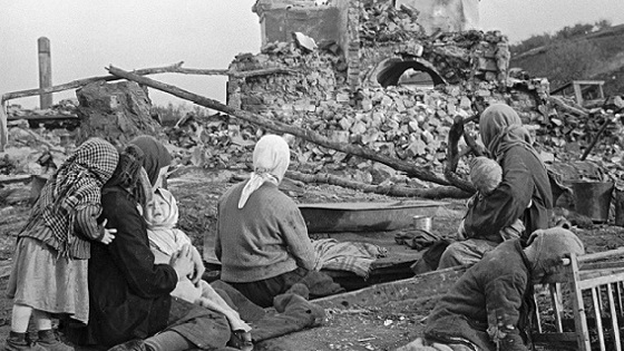 В сентябре 1945 года на советскую землю пришел долгожданный мир. Но достался он дорогой ценой. Жертвами войны стали более 27 миллионов. человек, 1710 городов и 70 тысяч сел и деревень были стерты с лица земли, разрушены 32 тысячи предприятий, 65 тысяч километров железных дорог, 98 тысяч колхозов и 2890 машинно-тракторных станций. Непосредственный ущерб советской экономике составил 679 миллиардов рублей. Народное хозяйство и тяжелая промышленность были отброшены минимум на десять лет назад.