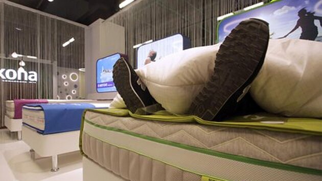 Мужчина решил испробовать матрас в магазине и случайно уснул