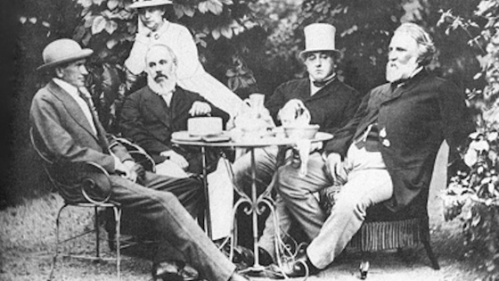 Будучи в Париже, Иван Тургенев сдружился с Густавом Флобером, Эмилем Золя, Эдмоном де Гонкуром и Альфонсом Доде. Все пятеро регулярно устраивали дружеские обеды, выкладывая по 40 франков (немалая сумма по тем временам) за каждого. "Что может быть восхитительнее дружеских обедов, когда сотрапезники ведут непринужденную, живую беседу, облокотясь на белую скатерть? Как люди многоопытные, мы все любили покушать. Количество блюд соответствовало числу темпераментов, количество кулинарных рецептов — числу наших родных мест. Флоберу требовалось нормандское масло и откормленные руанские утки; Эдмон де Гонкур, человек утонченный, склонный к экзотике, заказывал варенье из имбиря; Золя ел морских ежей и устриц; Тургенев лакомился икрой. Да, нас нелегко было накормить, парижские рестораторы должны нас помнить", — писал Доде.