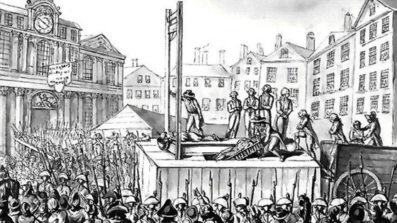 20 марта 1792 года Национальная ассамблея Франции одобрила смертную казнь с помощью гильотины. Обезглавливание происходило в публичном месте и являлось распространенной формой казни, целью которой было быстрое и безболезненное наказание за проступки и преступления. Первым обезглавленным на гильотине оказался обыкновенный вор, казнь произошла в апреле этого же года. Публичные казни во Франции прекратились в июне 1939 года из-за скандалов, затем они продолжались, но уже в тюрьмах.