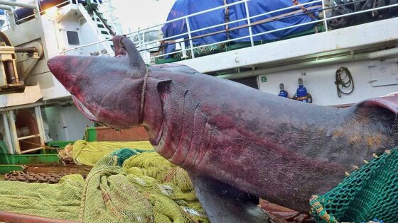 Россиянин, вылавливая сельдь, случайно поймал гигантскую полярную акулу