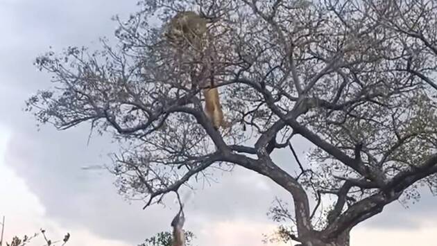 Стадо слонов в Южно-Африканской Республике (ЮАР) спасло леопарда от двух голодных львиц, которые забрались на дерево и попытались отобрать у него добычу. Видео произошедшего опубликовано на YouTube-канале Latest Sightings.