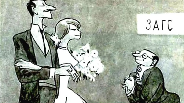 Впрочем, есть и исключения. Например, скоропалительный брак стиляги завершается скоропалительным разводом "из-за недопонимания" ("Я думал, она будет работать. А она думала, что я!", художник Е. Шукаев, 1965 г.), жених представляет свою упитанную невесту недоумевающим родителям уже по приезде из ЗАГСа: "Все в порядке - заведует складом!" (художник Г. Вальк, 1977 г.).
