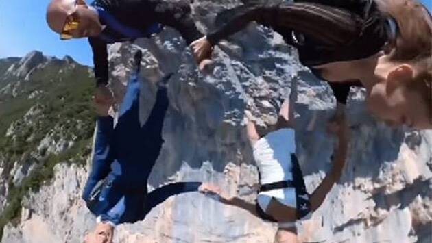 На ставшем вирусным видео жених и невеста стоят рядом с мужчиной в костюме священника на самом краю скалы. После его официальной речи невеста произносит «согласна», и молодожены вместе с гостями прыгают со скалы высотой в 1200 метров. Невеста и жених прыгнули с обычными парашютами, а некоторые другие участники праздника в специальных костюмах для скайдайвинга. В финале видео молодожены отпраздновали благополучное приземление поцелуем.