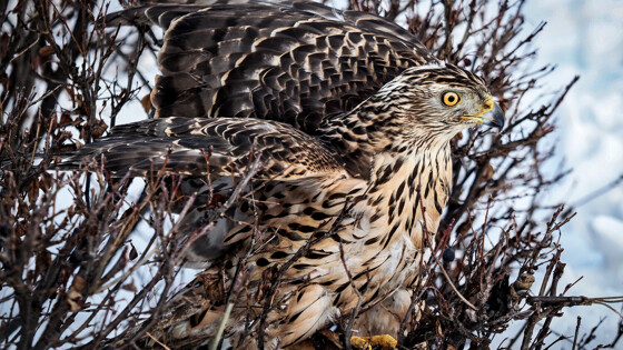 Затем на нее спикировал ястреб, который, вероятно, случайно выронил свою добычу и попытался ее вернуть.