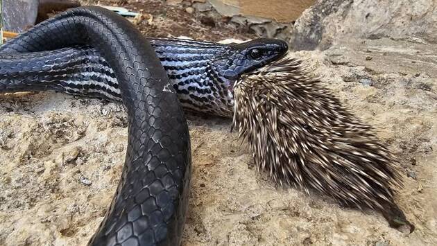 Когда пресмыкающееся нашли, оно неподвижно лежало на земле с дикобразом во рту. Как установил Авиад Бар, специалист по рептилиям из Управления природы и парков Израиля, это была неядовитая змея, относящаяся к виду Dolichophis jugularis.