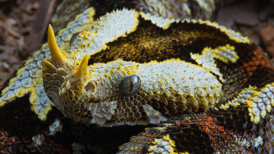У гадюки-носорога рог растет действительно на носу. Эта сравнительно длинная и толстая змея может вырастать до 1,2 метра и обитает исключительно в экваториальной Африке. Активна в основном ночью, днем прячется в опавших листьях, в норах, под валежником или в спутанных корнях лесных деревьев. Способна лазать по деревьям с помощью цепкого хвоста.