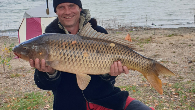 Рыбак из Челябинска закрыл сезон, выловив гигантского карпа. Фотографией трофея мужчина поделился в социальных сетях.