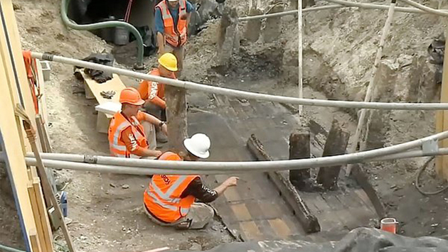 Строители выкапывали траншею, когда наткнулись на часть бывшей троллейбусной станции, работавшей несколько десятилетий назад. Затем рабочие обнаружили под землей часть пирса, а после наткнулись на деревянное судно. Длина лодки составила шесть метров. Предполагается, что ее сделали в XIX веке.