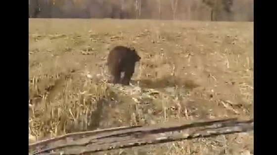 В Новосибирской области крестьяне прогнали в лес с поля огромного медведя