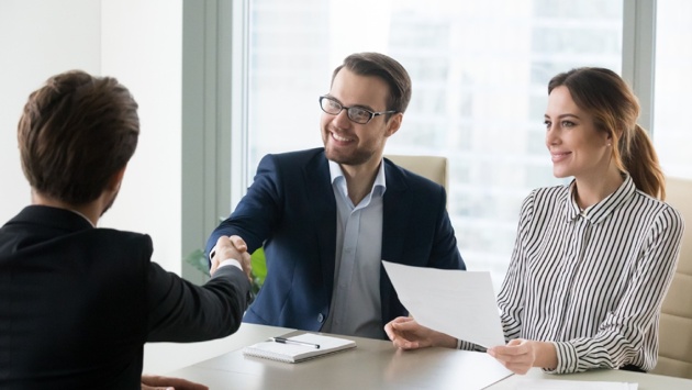 Если в вашей культуре принято рукопожатие, убедитесь, что вы не наклоняете корпус и голову вперед, но и не отклоняетесь назад. Когда вам нужно произвести доверительное впечатление, в рукопожатии используйте среднее давление руки, соизмеримое с давлением работодателя. Помните о том, что ладони должны быть сухими и теплыми.