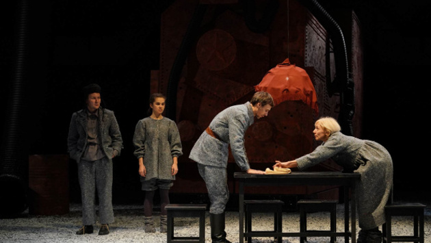 На пустой Земле - Моя жена была на вас похожа. - А мой муж на вас... не похож. Этот диалог, как и значительная часть материала для инсценировки Галины Зальцман, не из рассказа "Возвращение", а из гораздо менее известного сценария "Семья Иванова", написанного Платоновым в то же время, в 1945-1946 годы. Если в рассказе в фокусе сам Алексей Иванов и его путь с фронта домой, то в сценарии - жизнь семьи в эвакуации. Совместив два произведения, режиссер сделала - нет, не историю о Великой Отечественной, а почти притчу о силе любви, отогревающей паровозы и оберегающей другого от смерти. И конечно, всепрощающей. "Возвращение" нередко ставят в театре. Платонов всю войну работал фронтовым корреспондентом, и язык его поздних произведений заметно проще, чем ранних. А сюжет о мужчине, который по дороге с фронта случайно заехал к девушке Маше, вернулся домой, а потом чуть было не уехал обратно, но увидел из поезда, как за вагоном бегут его дети - так и просится на сцену. Спектакли по "Возвращению" часто бывают мелодраматичными, самартовский же стремится сохранить накал эмоций, не впадая при этом в излишнюю чувствительность. На сцене - суровый мир, напоминающий о постапокалипсисе огромными остовами паровозов (декорации сочинил именитый художник Семен Пастух, в Самаре он когда-то оформил два спектакля в Театре драмы). Не так-то просто придумать театральный аналог особенному платоновскому миру, в котором машина может быть одушевленной, в каждой фразе заключена метафора и в каждом слове - попытка не просто что-то назвать, но прорваться к метафизическим высотам. Команде спектакля это удается. Пространство с намеченным домом Ивановых, вокзалом и другими локациями - на самом деле не конкретное, неопределенное. Чахлое растение такого же ржавого цвета, как паровозы, каркас абажура, обернутый платком с головы хозяйки, неизменный снег под ногами. Распахнутая голая черная сцена - как пустая Земля, на которой хочется прибиться друг к другу, согреться от печки или от близкого. Но родственники разбросаны войной, и даже желание матери заботиться о детях вызывает осуждение. "Глядь!" - возмущенно повторяет на самом деле душевная и заботливая, но замороженная войной соседка Софья (яркая работа Антонины Коневой). Мол, кто будет кидать уголь, пока детей устраиваешь? Кто повезет нашим мужьям на фронт помощь, если из-за нас встанут вагоны и заводы? Груз ответственности, вместе с тяжелым физическим трудом, сгибают закутанные в серую шерсть женские фигуры (художник по костюмам Марина Евдоченкова). Заставляют тяжело шаркать ногами, переваливаться, прибиваться друг к другу и обниматься с лопатами, как с последней надеждой хоть на какую-то опору. В одном из эпизодов, надев яркие лодочки на каблуках (трудно представить что-то более несовместимое, чем эти туфли и это пространство), женщины будут запускать светящиеся вертолетики, как будто в надежде поймать немного тепла и нечаянной радости посреди вселенской стужи. Между Бахом и Окуджавой Женщин (Татьяна Наумова, Екатерина Образцова, Анна Тулаева) сопровождает тяжелый звук работающего станка. Интересно, что почти все метафоры этого спектакля, и даже этот монотонный звук на фоне - из текстов Платонова (в сценарии несколько раз упоминается непрерывный гул работающей электростанции). У спектакля вообще великолепный саунд-дизайн (композитор В