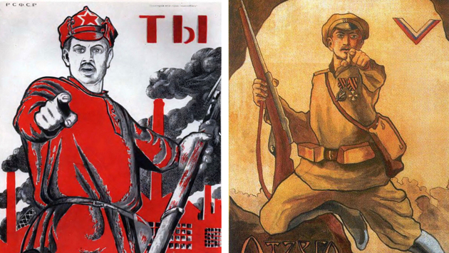 «С военной точки зрения большевики вели пропаганду более эффективно. Современному зрителю эти плакаты и вовсе показались бы глупыми. Но в то время они били точно в цель, на злобу дня. В Красную армию могли пойти служить представители не «эксплуататоров», а рабочие и крестьяне. А агитация обычно рассчитана на добровольцев, а не на мобилизованных».
