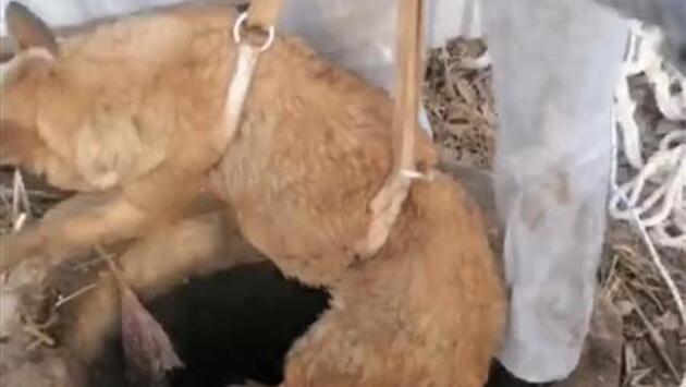 Люди услышали глухой лай из-под земли и нашли пострадавшую собаку по кличке Рыжуля в колодце глубиной девять метров.