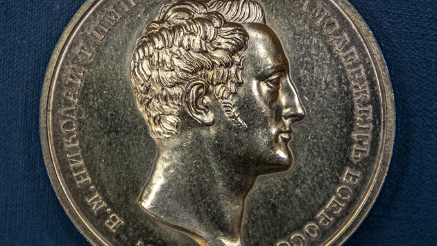 В результате мы имеем сосланных и повешенных дворян, стихотворение «Во глубине сибирских руд», восемь подлинных константиновских рублей -одних из самых дорогих монет – и никакой возможности провести юбилей Академии в столетнюю годовщину ее первого собрания. Нужно было подождать, пока все успокоится, устаканится, пройдут торжества по поводу коронации Николая – и потом уже отмечать юбилей Академии, который как раз был кстати, чтобы подчеркнуть – очередной праправнук Петра продолжает дело своего великого пращура. И юбилейная медаль – именно об этом.