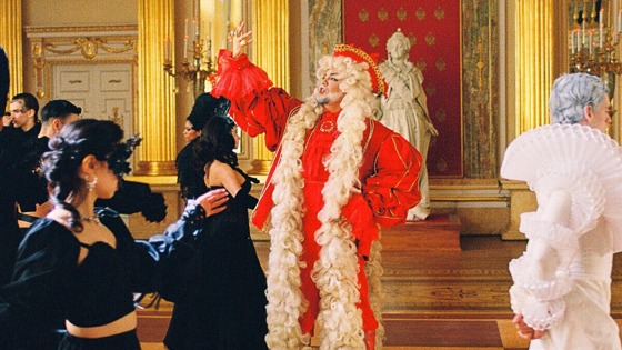 На фото со съемок король российской поп-сцены представлен в ярких красных нарядах эпохи и в длинном аллонжевом парике, локоны которого достают буквально до пола.