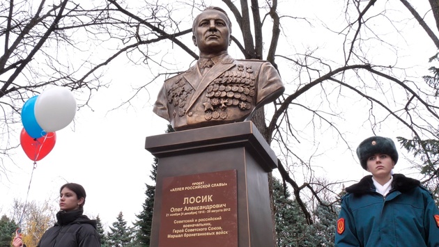 В краснодарском сквере Памяти героев танкистов в рамках проекта «Аллея российской славы» состоялась торжественная церемония открытия бюстов четырех героев Советского союза, маршалов бронетанковых войск - Олегу Лосику, Михаилу Катукову, Павлу Рыбалко и Павлу Полубоярову.