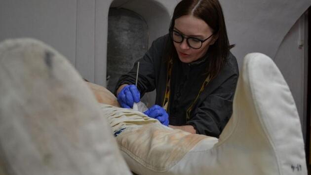Летчик совершил первый полёт в этом скафандре в 1976 году. Реставратором выступает Ирина Риффель. Специалисты убирает пятна, обеспыливает, удаляет излишки влаги, чистит детали.