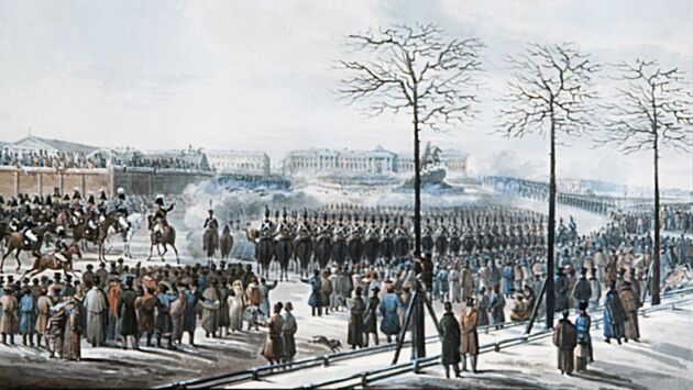 Событие, которое подробно изучается на уроках истории и литературы. В день повторной присяги Николаю I около трех тысяч человек объединились под руководством Сергея Трубецкого для свержения власти. Декабристы намеревались захватить Зимний дворец и царскую семью, потребовав издания Конституции, в которой были бы провозглашены все права и свободы и отмена крепостного права. Реализовать задуманное не удалось: мятеж был подавлен, в результате него погибли более 1200 человек.