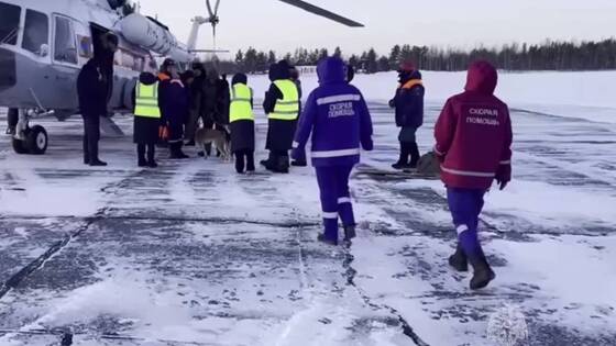 Россияне вышли на связь с родственниками и рассказали им, что застряли в избе вместе с тремя собаками. Эвакуировал мужчин вертолет Ми-8 МЧС России, затем их передали медикам.